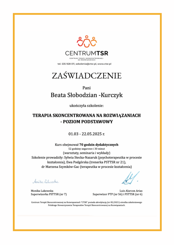 Terapii Skoncentrowanej na Rozwiązaniach (TSR).