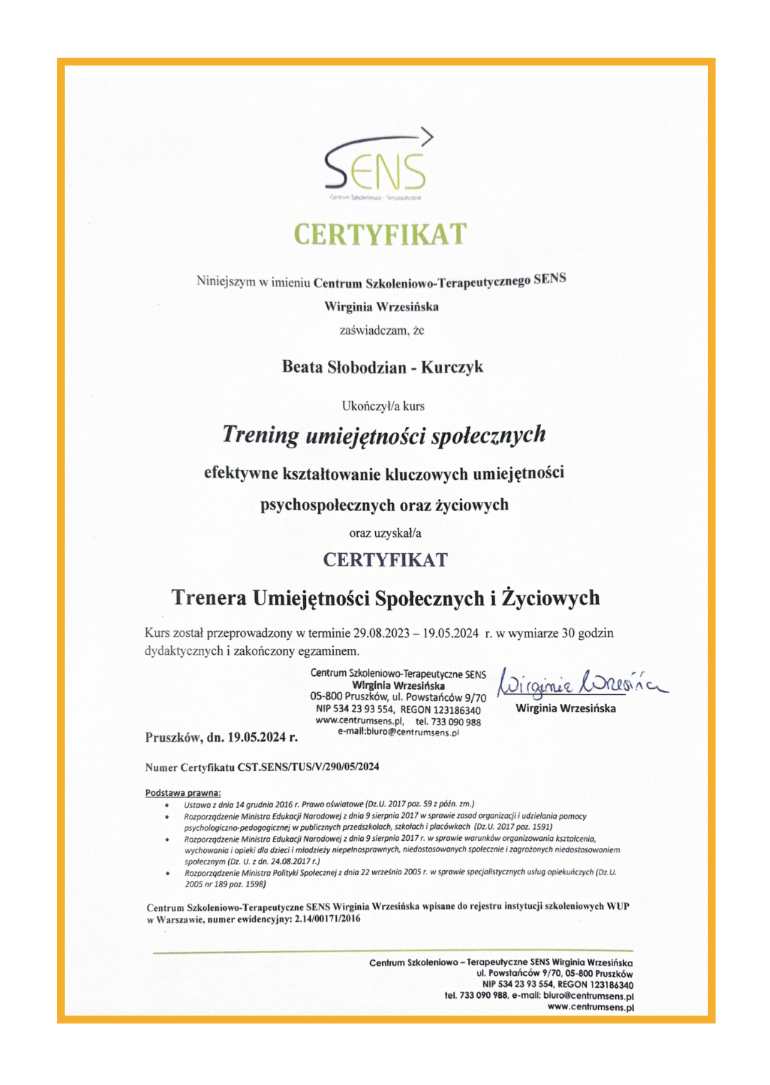 Doświadczenie zdobywałam m.in. w Fundacji, gdzie wspierałam rodziców w codziennych wyzwaniach wychowawczych oraz w budowaniu głębszych i bardziej satysfakcjonujących relacji z dziećmi.
