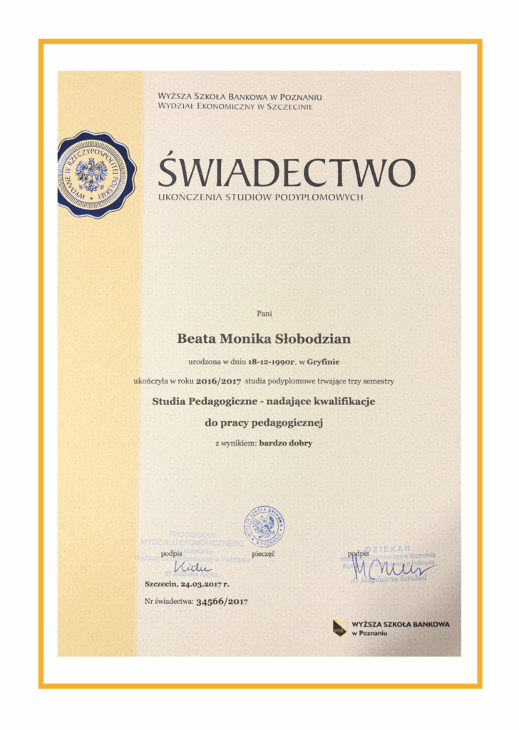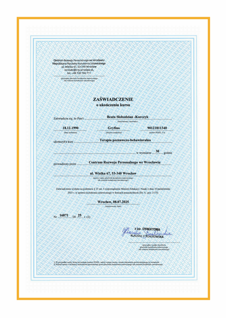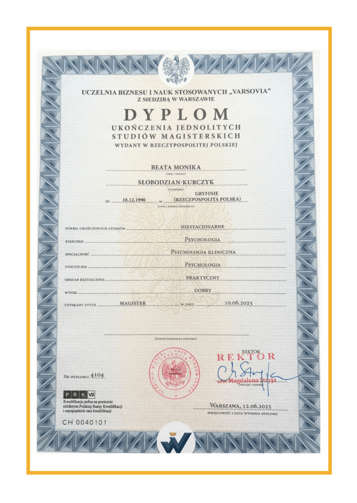 Z wykształcenia jestem magistrem  psychologii o specjalności klinicznej, seksuologiem oraz pedagogiem.